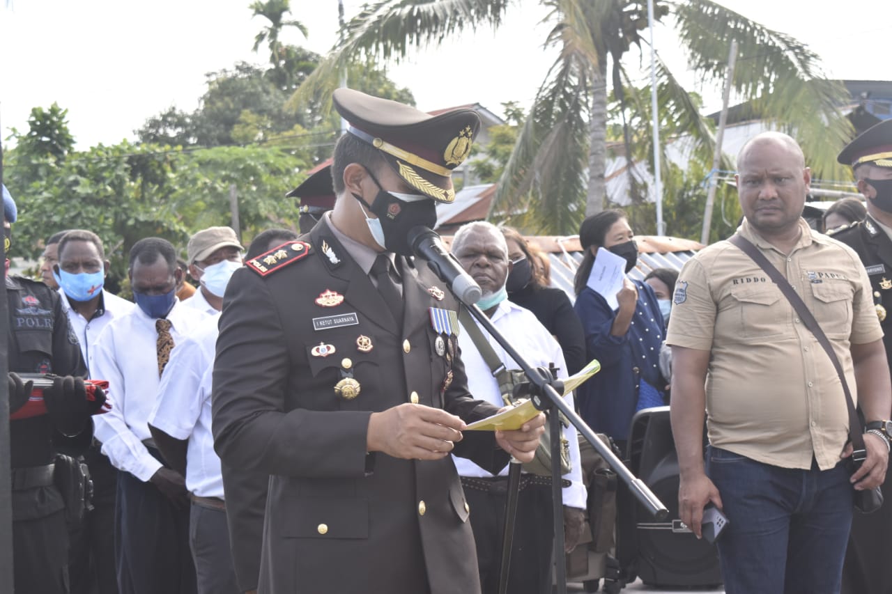 SuaraMabes, Nabire – Polres Nabire AKBP I Ketut Suarnaya S.I.K., S.H., pimpin upacara pemakaman di Taman Bahagia Kesuma Nabarua, Distrik Nabire, Kab. Nabire Sabtu, 21/08/2021.