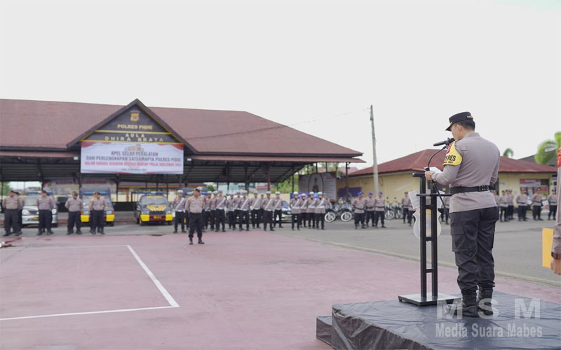 MediaSuaraMabes, Sigli – Polres Pidie Polda Aceh mengadakan apel kesiapsiagaan Satsamapta yang berlangsung di lapangan apel Polres Pidie. Kegiatan ini bertujuan untuk memastikan kesiapan personel dan peralatan dalam menghadapi pengamanan selama Operasi Mantap Praja Seulawah 2024 berlangsung di Kabupaten Pidie. Jumat, (15/11 2024)