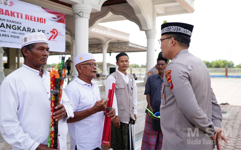 MediaSuaraMabes, Sigli – Dalam rangka mempererat tali silaturahmi dan meningkatkan kepedulian sosial, Polres Pidie melaksanakan kegiatan Bakti Religi di Masjid Raya Labui, Kecamatan Pidie. Kegiatan ini dipimpin langsung oleh Kapolres Pidie, AKBP Jaka Mulyana, S.I.K., M.I.K., dan turut dihadiri oleh Wakapolres, Pejabat Utama (PJU), seluruh personel Polres Pidie, serta masyarakat sekitar. rabu (4/6/2025)