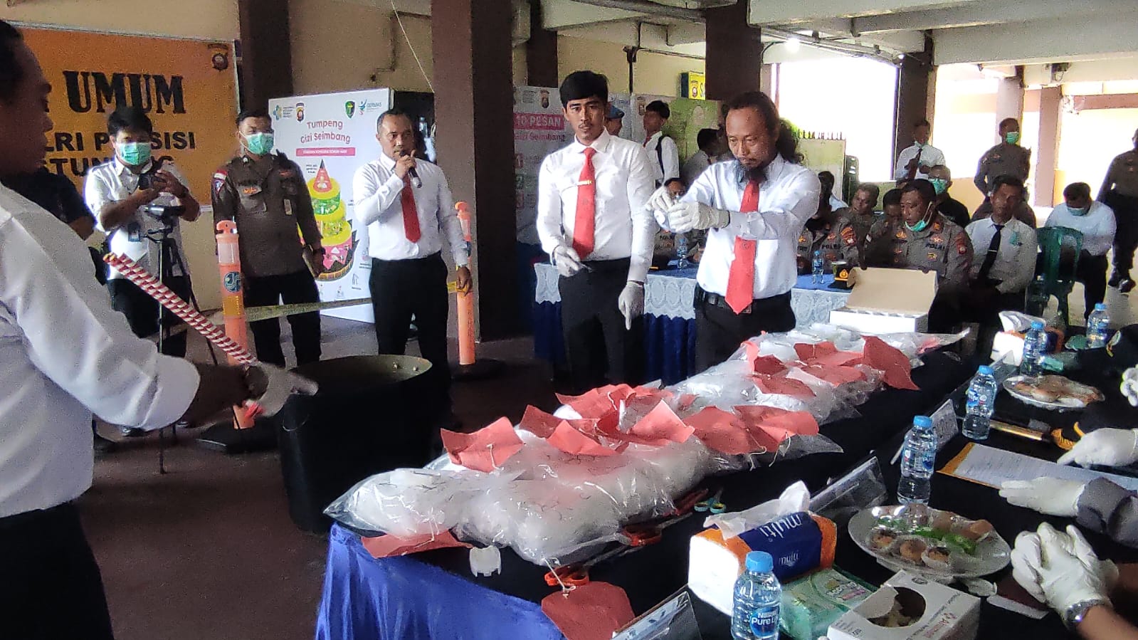 “Sampai dengan saat ini penyidikan sudah berproses sehingga pada hari ini dilaksanakan pemusnahan barang bukti sesuai mekanisme dan prosedur penyidikan,” katanya.