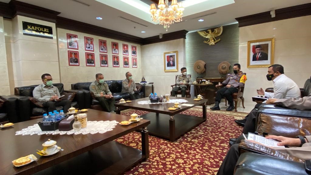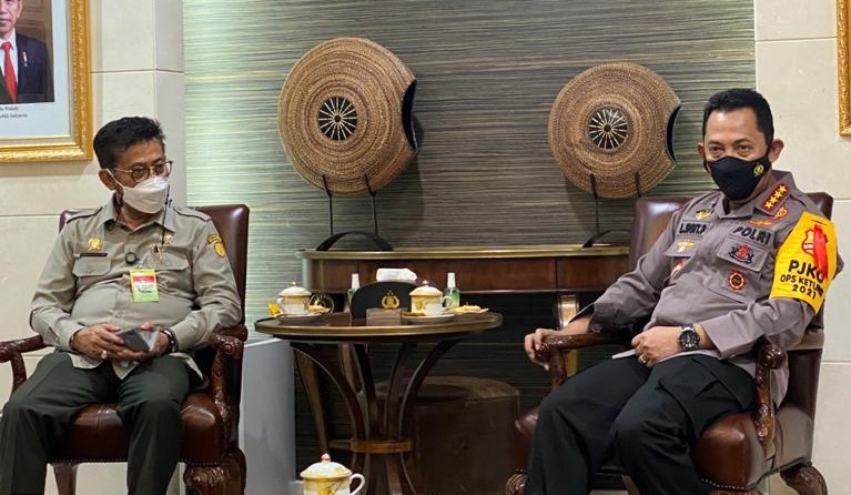 SuaraMabes, Jakarta – Kapolri Jenderal Listyo Sigit Prabowo menerima audiensi Menteri Pertanian Syahrul Yasin Limpo bersama jajaran di Ruang Rapat Kapolri, Mabes Polri, Jakarta, Senin (17/5).