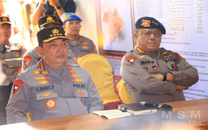 Selain melakukan peninjauan secara langsung, Kapolri juga membawa bantuan mulai dari selimut hingga pakaian, sembako, hingga obat-obatan.