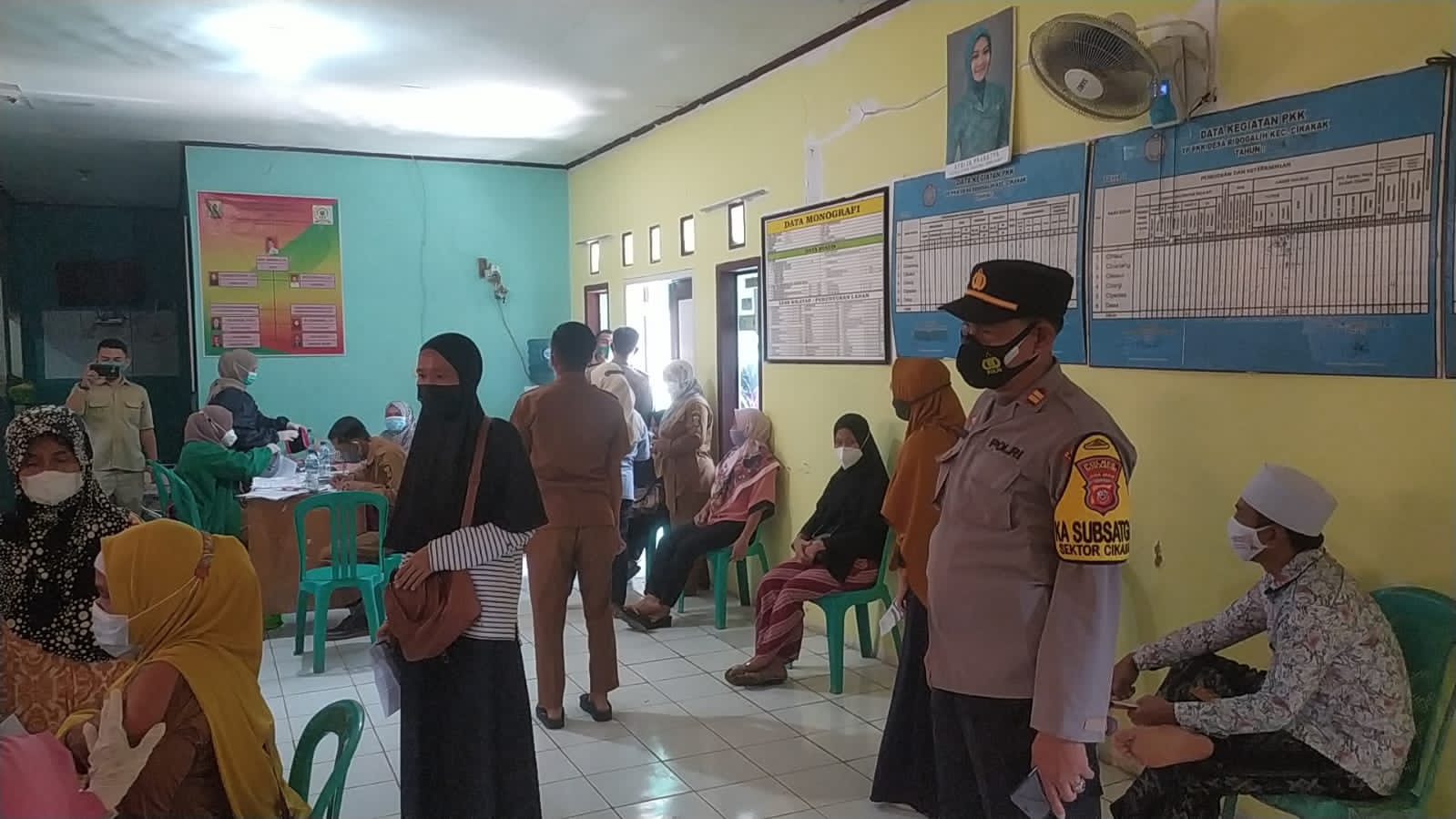Vaksinasi yang bekerja sama dengan Satgas Kecamatan, Desa dan Puskesmas Kec. Cikakak, selama kegiatan berjalan aman nyaman dan kondusif.