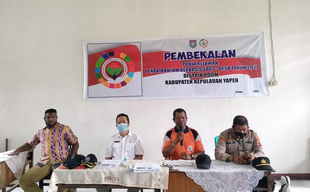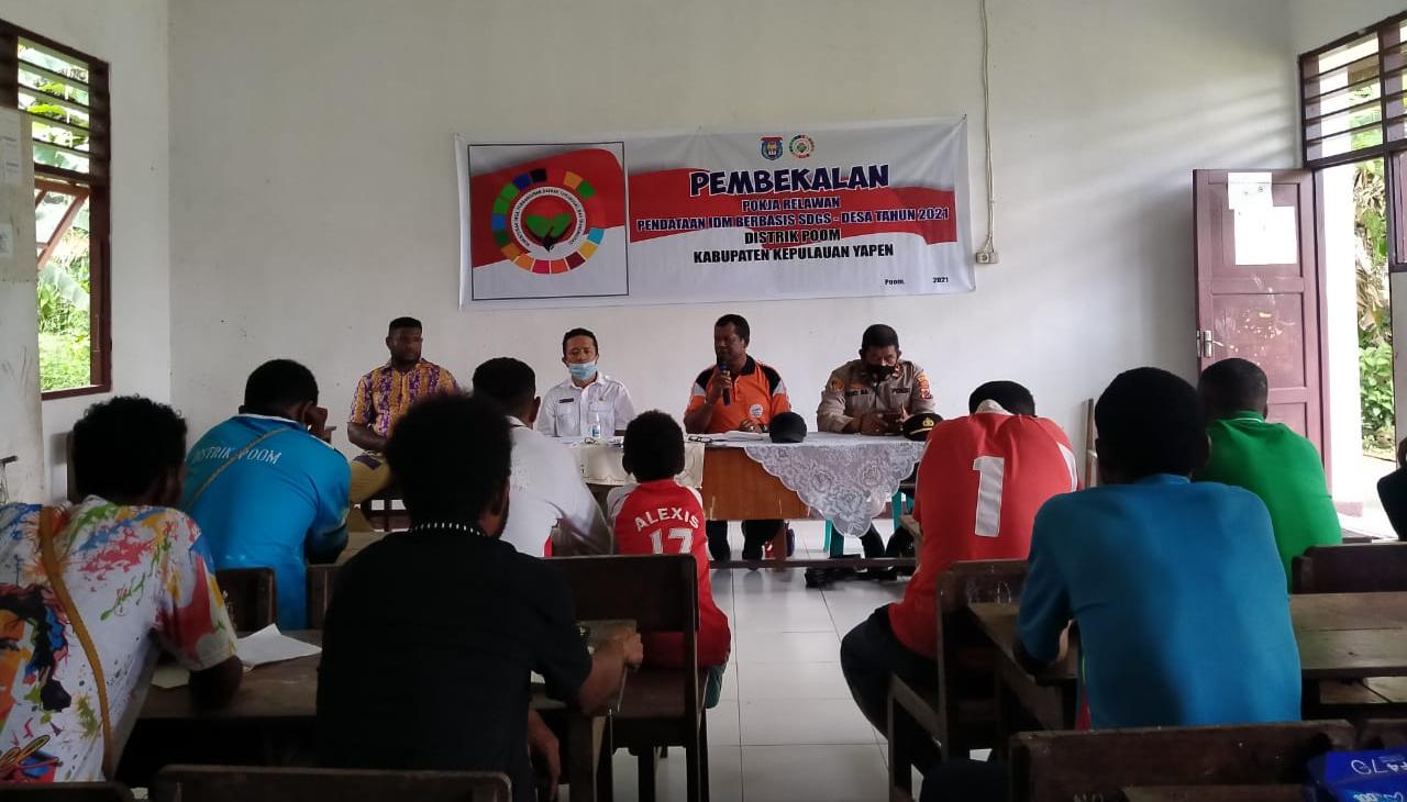Kapolsek Poom Ipda Romy. M.B bersama anggotanya melakukan pendampingan, terhadap Pemerintahan Distrik Poom yang akan melakukan pembekalan bagi”relawan pendataan Indek Desa Maju (IDM) berbasis Sustainable Development Goals (SDGs) Desa.
