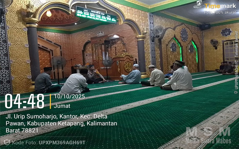 Ketapang, Polda Kalbar — Kapolsek Delta Pawan, Ipda Chepry Perahera, S.H., bersama Bhabinkamtibmas melaksanakan kegiatan Subuh Keliling (Subuh Suling) di Masjid Al-Falah, Jalan Urip Sumoharjo, Kelurahan Kantor, Kecamatan Delta Pawan, Kabupaten Ketapang, Jum’at, 10 Oktober 2025.