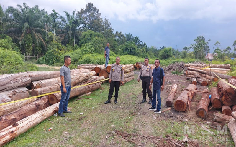 Kapolsek Kampar Kiri Temukan Tumpukan Kayu Log di Desa Kuntu Darussalam Kec. Kampar Kiri