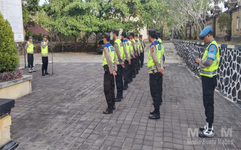MediaSuaraMabes, Melaya Bali – Kapolsek Melaya, Polres Jembrana, Polda Bali AKP I Komang Muliyadi, S.H., M.M., memimpin apel kesiapan pengamanan untuk menyambut Hari Raya Natal di halaman depan Mako Polsek Melaya, Jembrana, Minggu (24/12/2023).