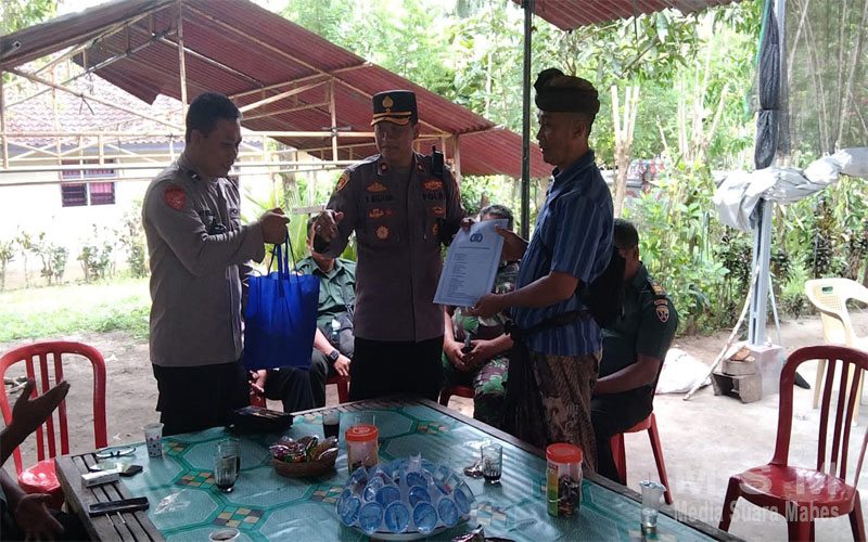 Tidak hanya doa dan dukungan moral, Kapolsek Melaya juga menyerahkan santunan kepada keluarga Almarhum yang diterima oleh Aiptu I Ketut Mertayana.