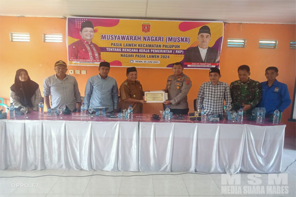 Hal itu disampaikan Wali Nagari Pasia Laweh (Wali Nagari=Kepala Desa, red) dalam acara Musna Pasia Laweh tentang Rencana Kerja Pemerintah RKP TA 2024 dan Pemberian Penghargaan Kepada Kapolsek Palupuh pada hari Senin, tanggal 5 juni 2023 pkl. 10.00 wib yang bertempat di ruang aula nagari pasia laweh kec. Palupuh Kab. Agam Sumatera Barat.