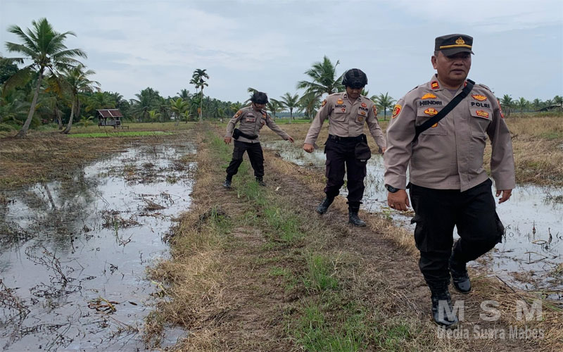 MediaSuaraMabes, Indragiri Hilir – Tidak ada halangan yang menghentikan niat Kapolsek Sungai Batang, Iptu Hendri.J, S.H, beserta Kanit Samapta dan Babin Kamtibmas Desa Mulgomulyo untuk mendatangi rumah warga di Desa Mulgo Mulyo, Kecamatan Sungai Batang, Kabupaten Indragiri Hilir. Mereka berjalan kaki melewati persawahan yang berlumpur untuk melakukan sosialisasi Pemilu Damai 2024 dan cooling system.