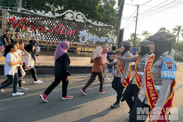 Sejumlah Polwan Polres Jepara atau biasa dikenal Kartini Polres Jepara Menyapa ini berpatroli demi kenyamanan dan keamanan CFD.