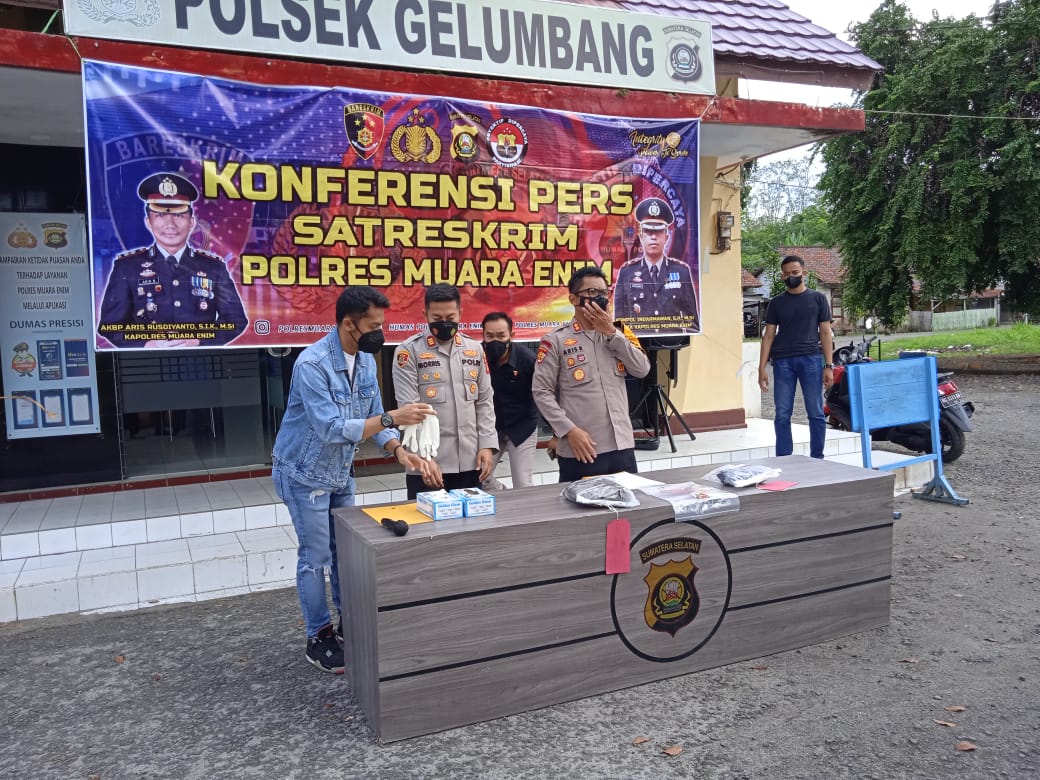 Giat press ungkap kasus yang digelar di Mapolsek Gelumbang.