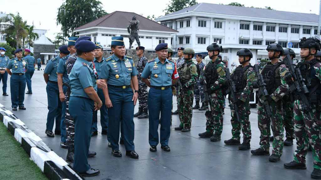 Kasal didampingi Pangkoarmada RI dan Para Pejabat Utama Mabesal melaksanakan pengecekan langsung kesiapan personel dan materiil, sebelum diberangkatkan besok, Kamis (18/01).