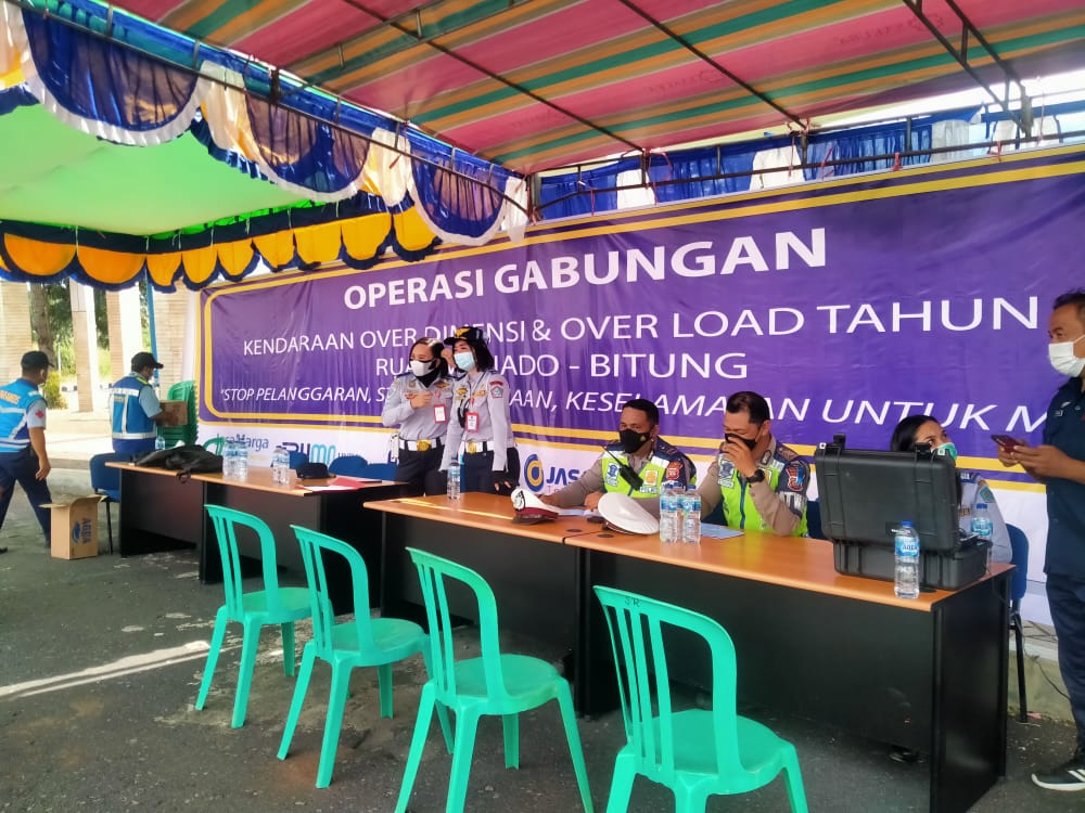Akbp Alam Kusuma S Irawan SH,SIK,MH melalui Akp Awaludin Puhi SIK menjelaskan, pada hari Selasa tanggal 28 September 2021 jam 08.00 – 12.00 wita telah di laksanakan kegiatan operasi gabungan bersama instansi terkait yang berlokasi di ruas jalan Tol Manado – Bitung depan KEK Sagerat.