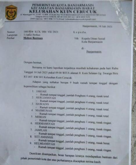 Adapun yang terbakar ada 9 buah tempat tinggal dengan rincian kepemilikan.