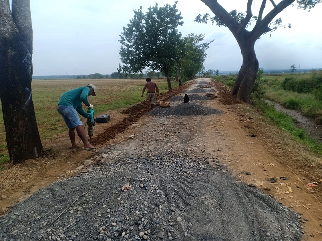 Apa yang disampaikan oleh narasumber itu benar adanya dan kegiatan pembangunan jalan yang diduga adalah raba beton atau pengerasan jalan tersebut adalah benar adanya. Dan disitu hanya tampak dua orang pekerja harian.