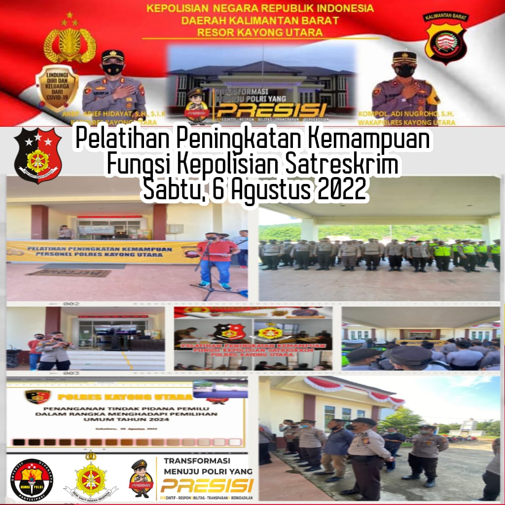 MediaSuaraMabes, Kayong Utara – Pada hari ini Sabtu, 6 Agustus 2022 pukul 08.00 WIB, bertempat di halaman/lobby Polres Kayong Utara telah dilaksanakan kegiatan Latihan Peningkatan Kemampuan (Latkatpuan) Fungsi Satreskrim dengan tema: penanganan tindak pidana Pemilu dalam rangka menghadapi pilkades serentak tahun 2022 dan pemilihan umum tahun 2024″