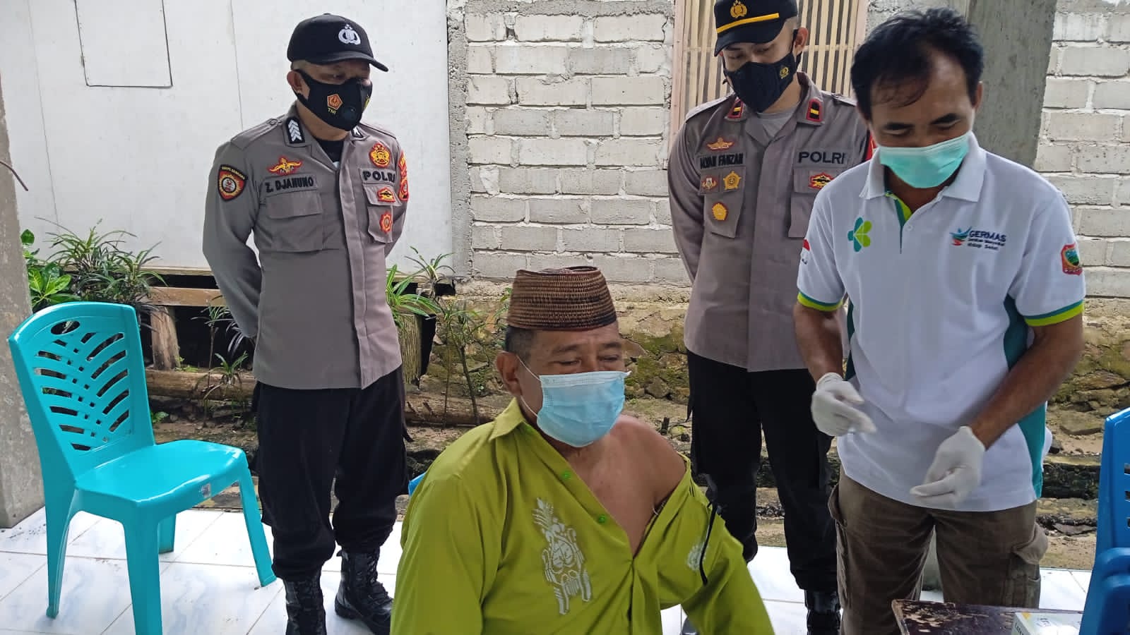 Vaksinasi dihadiri juga oleh Kapolsek Pulubala Ipda Alfan Fauzan, S. TrK, beserta anggota dan jajaran, Kepala Puskesmas Pulubala Fatmah Mus Abdul FKM, Kepala Desa Molyonegoro dan para petugas medis Puskesmas Pulubala serta masyarakat.