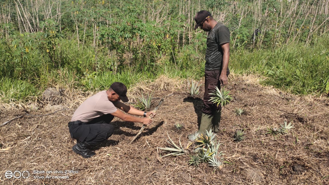 SuaraMabes, Jayapura – Pada hari Senin tanggal 14 Juni 2021, dalam rangka mengembangkan sektor pertanian, Binmas Noken Polsek Bokondini melakukan pembukaan lahan dan menanaman bibit nanas di Distrik Bokondini.