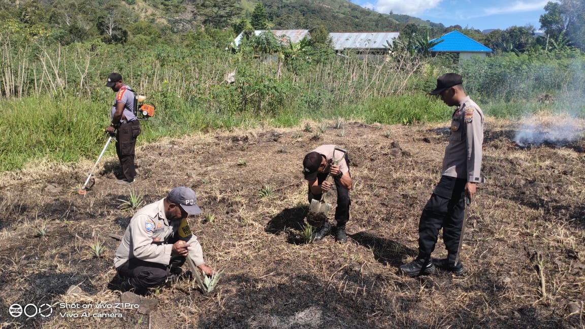 Kapolsek Bokondini Ipda Remi Kogoya Ketika dikonfirmasi mengatakan, pada hari ini Personel Polsek Bokondini melakukan pembukaan lahan dan menanam bibit nanas.