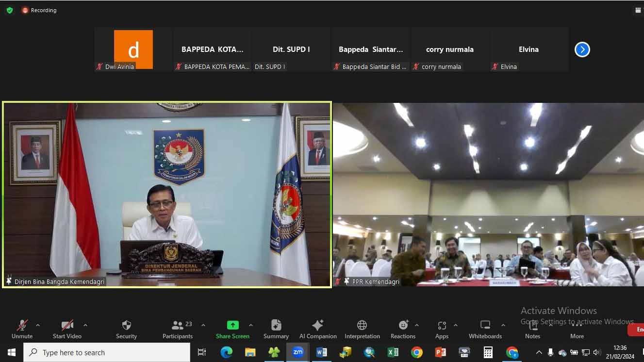 MediaSuaraMabes, Padang – Direktorat Jenderal Bina Pembangunan Daerah Kementerian Dalam Negeri menyelenggarakan rapat sinergitas pemerintah daerah dengan Dewan Perwakilan Rakyat Daerah (DPRD) terhadap percepatan penyusunan dan penetapan Raperda Rencana Tata Ruang Wilayah (RTRW) sebagai pedoman dalam penyusunan dan penetapan Rencana Detail Tata Ruang (RDTR) secara hybrid bertempat di Mercure Hotel Padang, Rabu (21/2/2024).