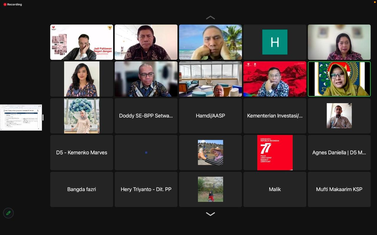 MediaSuaraMabes, Jakarta – Ditjen Bina Pembangunan Daerah Kemendagri diwakili Kasubdit Kelautan dan Perikanan Tantri Lisdiawati menghadiri rapat koordinasi Sekretariat Panitia Nasional Penyelenggara Sail Teluk Cenderawasih (STC) 2023, Selasa (16/5/2023) secara daring.