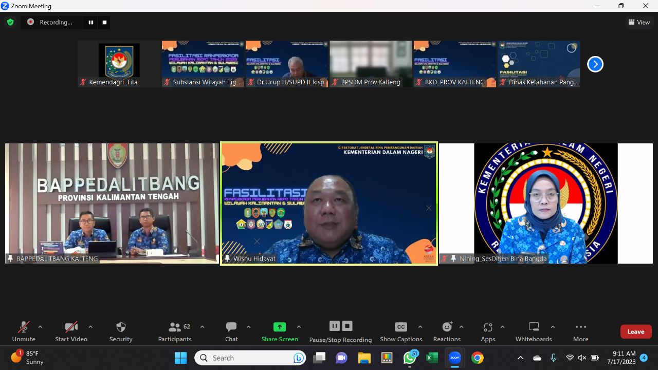 Pertemuan tersebut dihadiri oleh Direktorat Regional II Kedeputian Regional Kementerian PPN/Bappenas, Perwakilan Komponen Lingkup Kementerian Dalam Negeri, Kementerian/Lembaga Teknis Terkait, Direktorat SUPD lingkup Ditjen Bangda, Ka. Bappedalitbang Provinsi Kalteng serta perwakilan OPD Provinsi Kalteng.