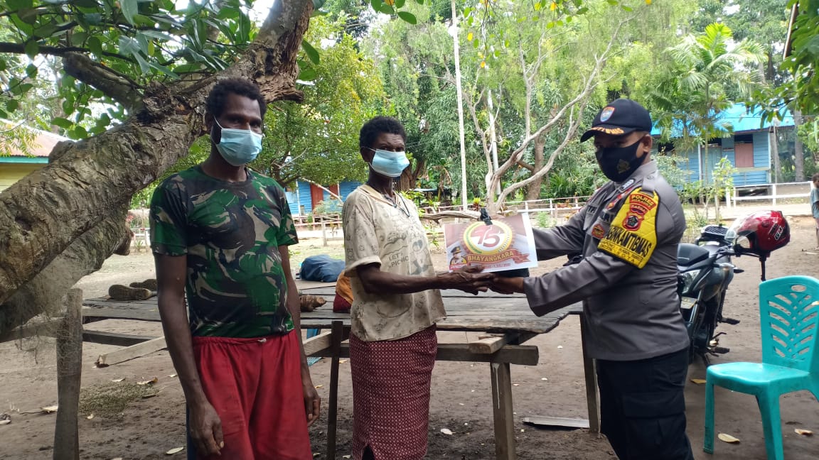 Adapun Bantuan Sembako ini dalam rangka hari Bhayangkara ke – 75 di Polsek Sota, sembako diberikan kepada Yohana Yobi Maywa, Paskalina Makus Maywa dan Whelmince sanggra.