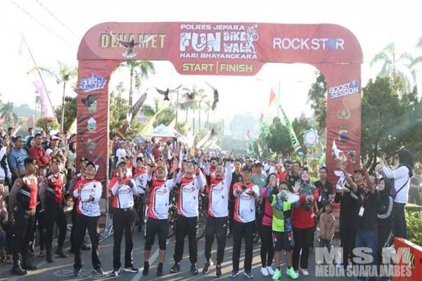 MediaSuaraMabes, Jepara – Dalam rangka memperingati hari Bhayangkara ke-77, Polres Jepara menyelenggarakan Fun Walk Fun Bike yang diikuti ribuan peserta dari unsur TNI, Bhayangkari, Komunitas Sepeda, dan masyarakat sekitar yang berlokasi di Alun-Alun 1 Jepara, Minggu (9/7/2023).