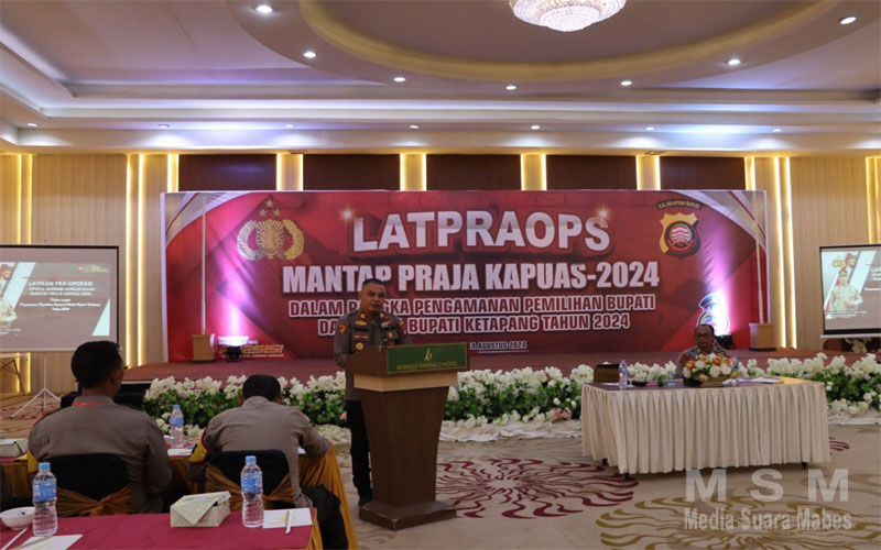 MediaSuaraMabes, Ketapang Kalbar – Dalam rangka memastikan kesiapan pengamanan selama tahapan Pemilihan Umum Kepala Daerah (Pemilukada) 2024, Polres Ketapang menggelar latihan pra operasi di Aula Ballroom Hotel Borneo Emerald Ketapang, Rabu siang (14/08/2024). Latihan ini diikuti oleh seluruh personel yang akan terlibat dalam pengamanan pemilukada, termasuk dari satuan-satuan fungsional dan Polsek jajaran Polres Ketapang.