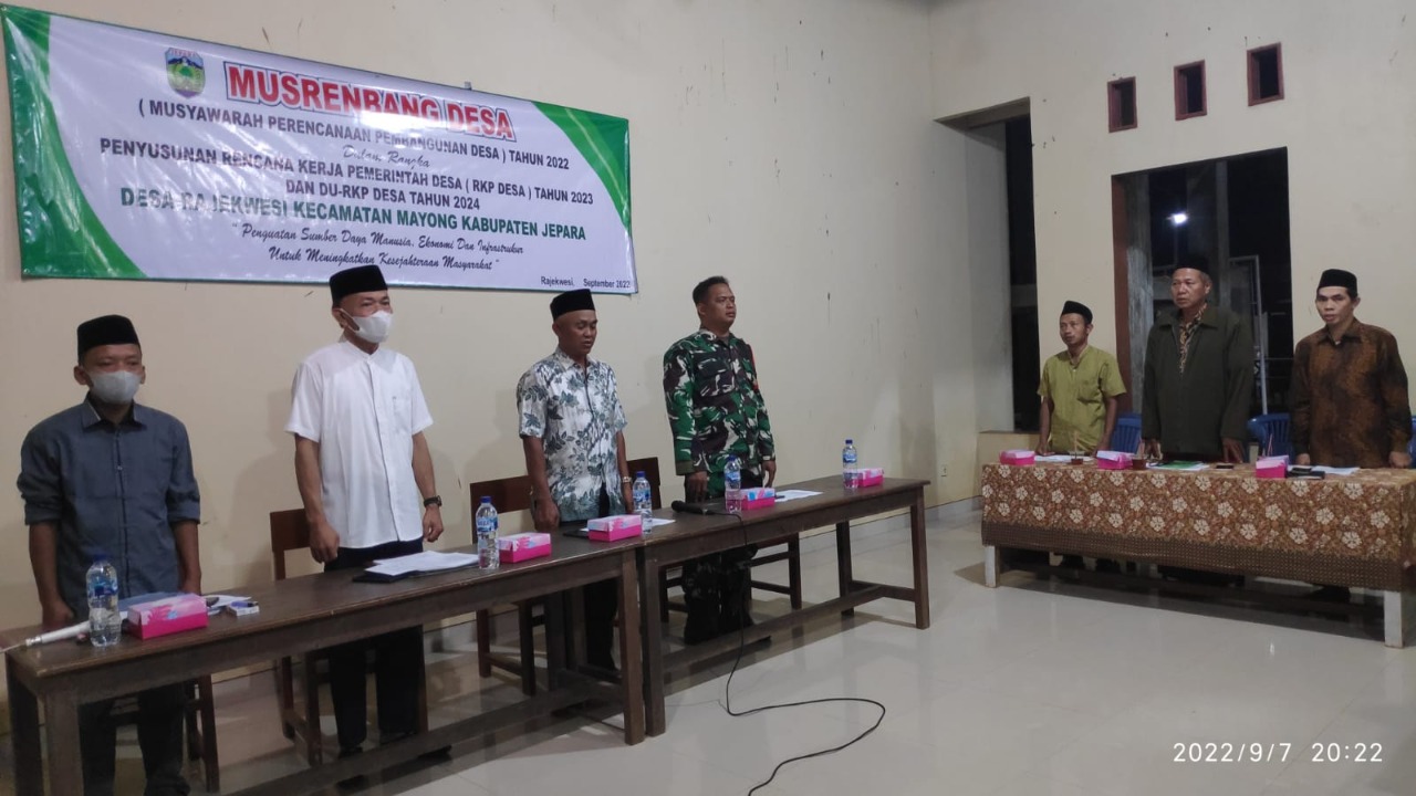 Seperti yang dilakukan oleh Babinsa Serda Afif anggota Koramil 05/Mayong jajaran Kodim 0719/Jepara menghadiri Musrenbangdes dalam rangka Rencana Kerja Pemerintah Desa (RKPDes) Tahun 2023 dan DU-RKP Desa Tahun 2024 yang dilaksanakan di Pendopo Desa Rajekwesi Kecamatan Mayong, Kabupaten Jepara, Jawa Tengah. Rabu, (8/9/2022) malam.