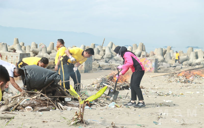 Dengan semangat gotong royong, semua yang berada di lapangan semangat membersihkan area pesisir pantai demi menjaga keindahan alam sekaligus kelestarian ekosistem laut.