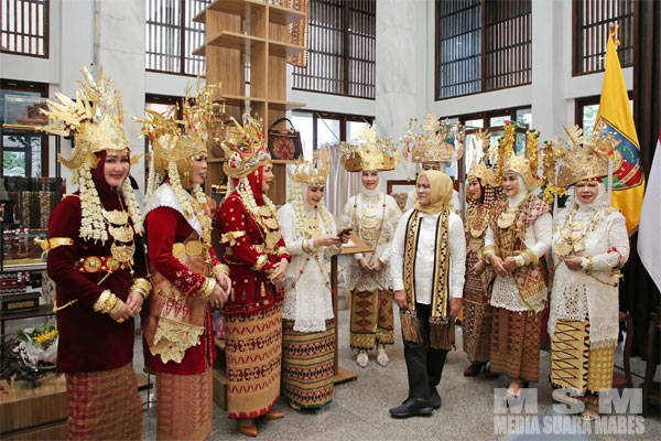 Kedatangan ibu Riana dan Rombongan di sambut oleh Gubernur Lampung dan Ketua Dekranasda Provinsi Lampung serta sejumlah Ketua Dekranasda Se – Provinsi Lampung dengan menggunakan pakaian Adat Lampung Lengkap.(Hijrah)