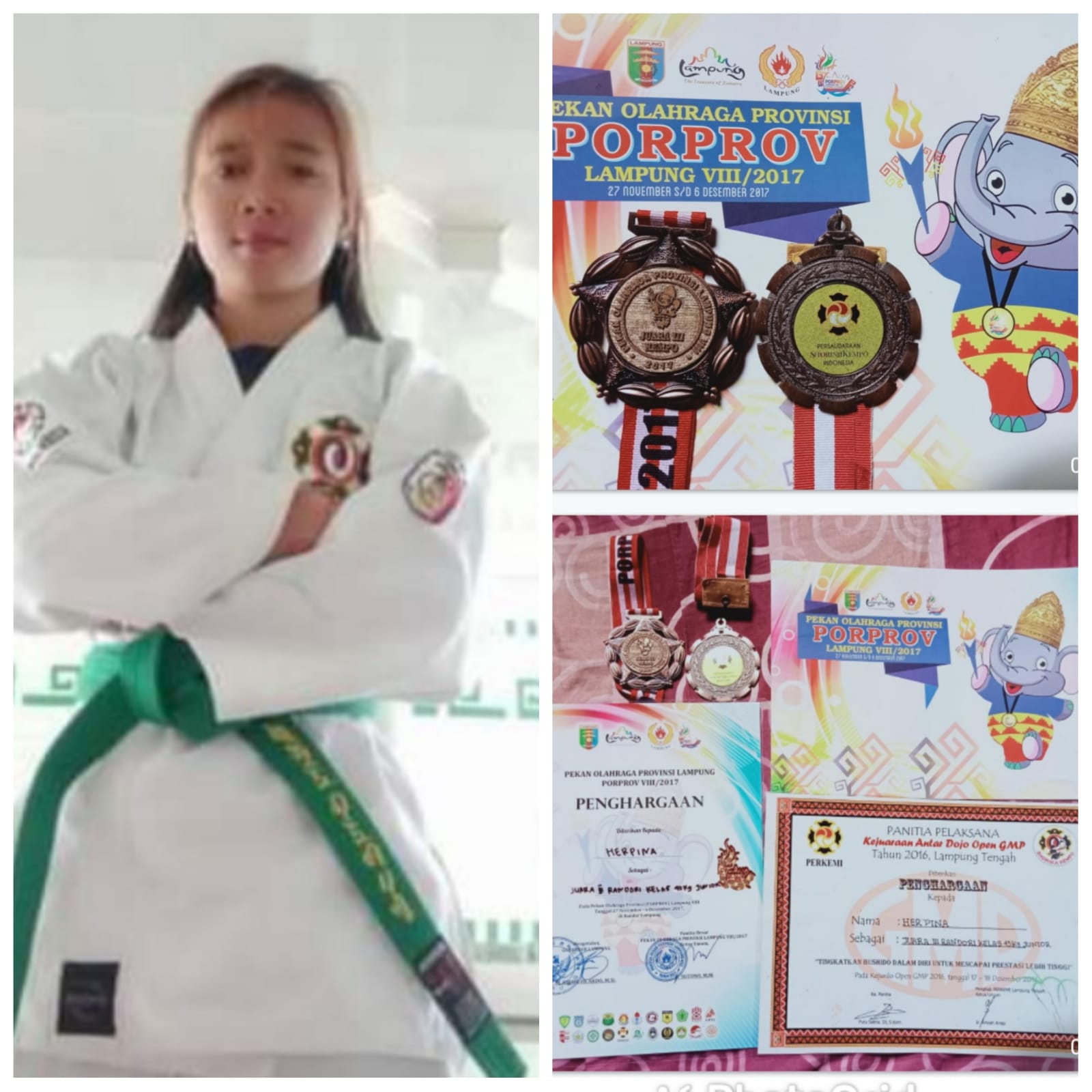 “Dari sekarang saya juga fokus untuk menambah berat badan, bila tubuh kurang berat maka secara otomatis tidak bisa mengikuti Kejuaraan kempo pada kelas 50 Kg, sedangkan untuk sementara ini berat badan saya 44 Kg,” jelas Herpina.