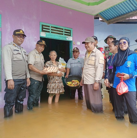 Selanjutnya Para Korban Bencana Banjir menerima bantuan sembako dari Forkopimcam Kecamatan Sandai dan Pengobatan Gratis dari Puskesmas Sandai bersama PPNI DPK Sandai .