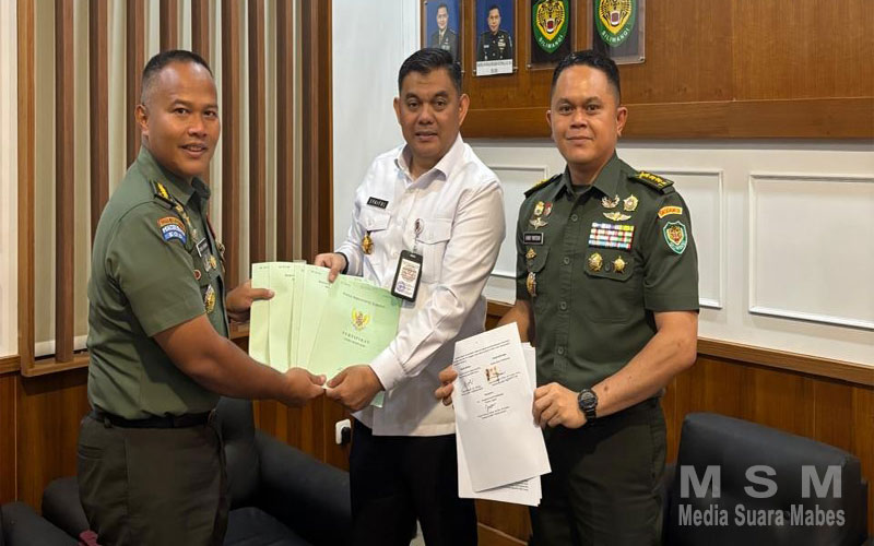 MediaSuaraMabes, Bandung — Kodam III/Siliwangi melalui Kepala Zeni Kodam (Kazidam) III/Slw Kolonel Czi Trisnu Novawan, S.Sos., M.Tr.(Han)., M.Si. melaksanakan serah terima aset Barang Milik Negara (BMN) berupa tanah dan 5 (lima) buku Sertifikat Hak Pakai SMA Taruna Nusantara Cimahi kepada Kabag Konbang dan BMN Roum Setjen Kemhan, Kolonel Czi Syaiful Rachman, S.E., M.Han., yang disaksikan oleh Aslog Kasdam III/Slw Kolonel Inf Fanny Fantouw, S.Sos., M.I.Pol., M.Tr.(Han)., bertempat di ruang kerja Aslog Kasdam III/Siliwangi, Rabu (26/11/2025).