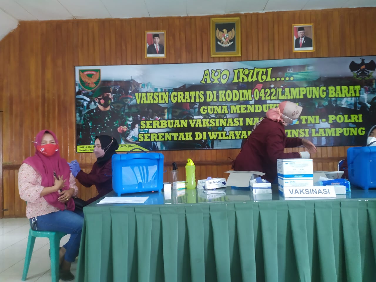 Dalam pelaksanaannya, Kodim 0422/Lampung Barat bekerjasama dengan Dinas Kesehatan, hadir dalam hal ini tenaga kesehatan Puskesmas membantu dalam rangka kegiatan Vaksinasi Covid 19.