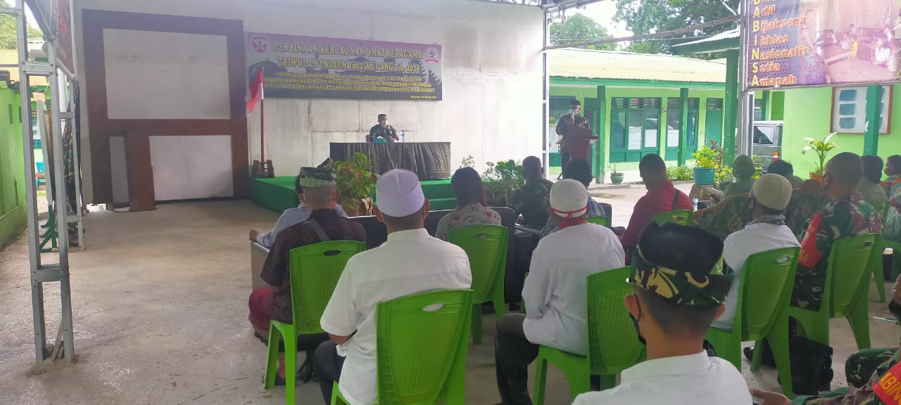 SuaraMabes, Kupang – Dalam rangka mewujudkan keharmonisan dan kondusifitas antar umat beragama, Kodim 1604/Kupang menggelar Pembinaan Kerukunan Umat Beragama TW I TA. 2021 dengan mengusung tema “Mewujudkan Binter TNI-AD yang Adaptif Melalui Kegiatan Pembinaan Kerukunan Umat Beragama Demi Mencegah Konflik Sosial Antar Umat Beragama Serta Menjaga Persatuan dan Kesatuan Bangsa.”