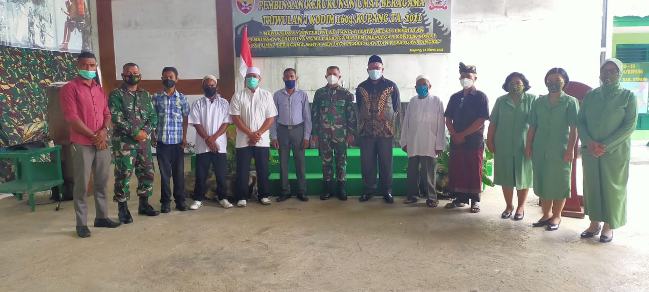 “Kegiatan pembinaan kerukunan umat beragama ini bertujuan untuk mencegah konflik sosial antar umat beragama serta untuk meningkatkan rasa toleransi, saling menghargai antar umat beragama demi mencegah terjadinya konflik sosial guna menjaga persatuan dan kesatuan bangsa khususnya di wilayah Kodim 1604/Kupang,” pungkasnya.