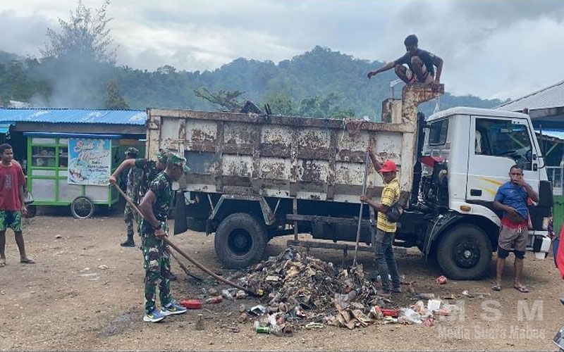Kodim 1709/Yawa Gelar Karya Bakti Pembersihan Pasar