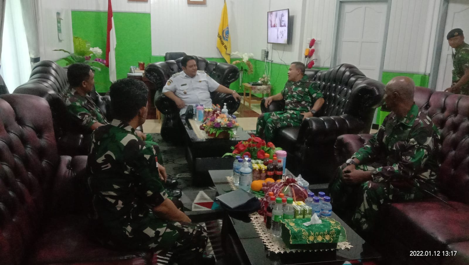 “Komandan Lamtamal X Jayapura, Brigadir jendral TNI Marsekal Feryanto.P Marpaung, yang didampingi oleh Aslog Lantamal X Jayapura a.n. Letkol Laut (P) Jaya Sukmana dan Asobs Lantamal X Jayapura a.n. Kolonel Laut (P) I Nyoman Surya, “melakukan tatap muka di ruang VIP bandara udara nabire dengan sejumlah pejabat Daerah dan petinggi TNI dan Polri yang di kota nabire diantaranya : Wakil bupati Nabire Ismail Djamaludin, Kapolres Nabire AKBP I ketut Suarnaya.,S.I.K., S.H, Mayor Laut KH Dominikus Komandan Lanal Nabire, Dandim 1705 Nabire Letkol Inf Anjuanda Pardosi Se.msi, Danyonif RK 753 AVT