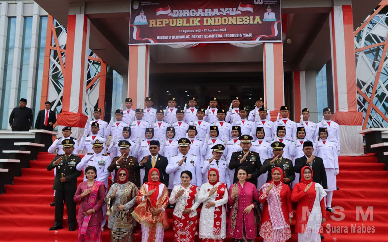 MediaSuaraMabes, Ketapang – Polda Kalbar, Kapolres Ketapang AKBP Muhammad Harris, S.H., S.I.K., M.I.K., CPHR bersama Ketua Bhayangkari Cabang Ketapang Ny Meta Harris menghadiri upacara pengibaran bendera merah putih dan peringatan detik detik proklamasi Tahun ke-80 Kemerdekaan Republik Indonesia yang digelar di halaman Kantor Bupati Ketapang di Kawasan Jalan Jenderal Sudirman Kecamatan Delta Pawan Kabupaten Ketapang Kalimantan Barat, Minggu (17/08/2025) Pukul 07.30 Wib.