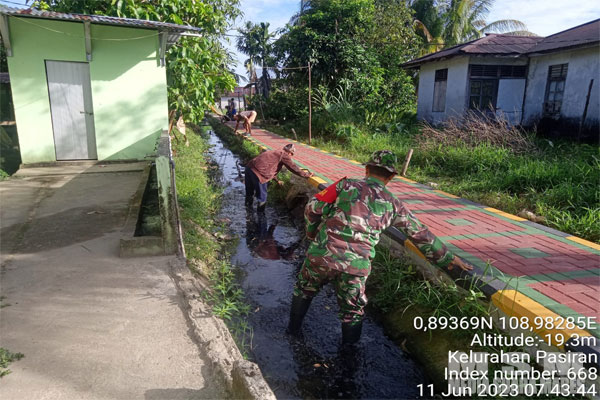 MediaSuaraMabes, Singkawang – Babinsa 1202-05/SKB, Serda Darmaji bersama dengan Warga laksanakan kegiatan Kerja Bakti Pembersihan Saluran Air/ Parit di Wilayah RT. 029/013 Jl. G.Merapi Gg. Warga Kel. Pasiran Kec. Singkawang Barat Kota Singkawang.