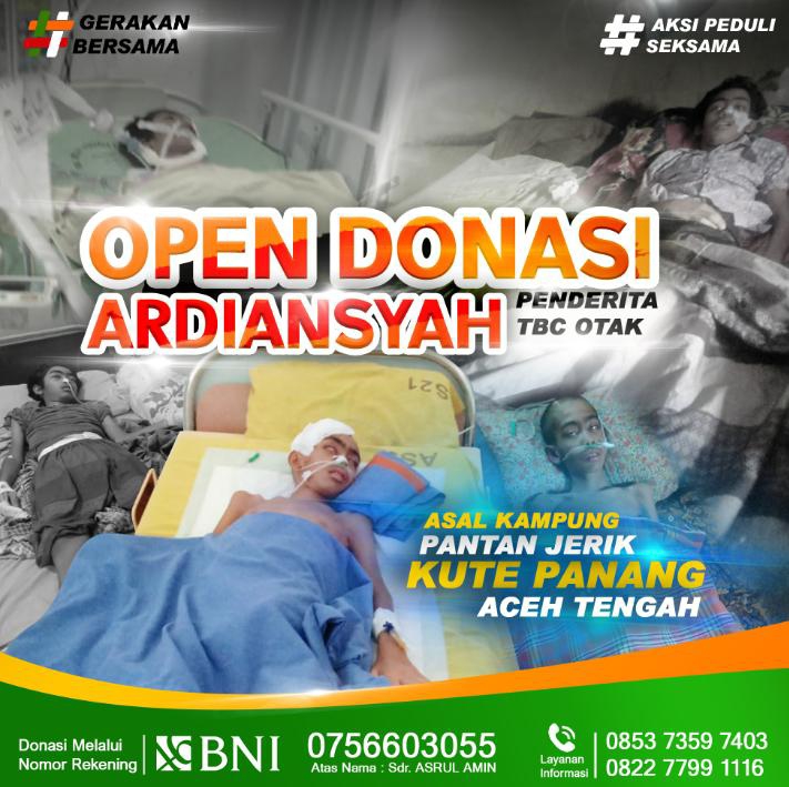 Untuk itu, pihaknya mengalang donasi untuk Ardiansyah. Bagi para dermawan yang ingin menyumbangkan donasinya, Asrul mengatakan bisa Nomor Rekening Bank BNI : 075660355 A.n Asrul Amin.( Ar Lubis Kaperwil Aceh).