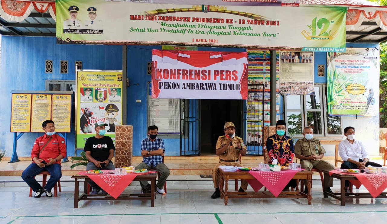 MediaSuaraMabes, PRINGSEWU – Kepala Pekon Ambarawa Timur, Kecamatan Ambarawa, Kabupaten Pringsewu Lampung, melakukan Konferensi Pers Rilis di Aula Pekon Ambarawa timur Kecamaatan Ambarawa Kabupaten Pringsewu, Selasa 21-9-2021.