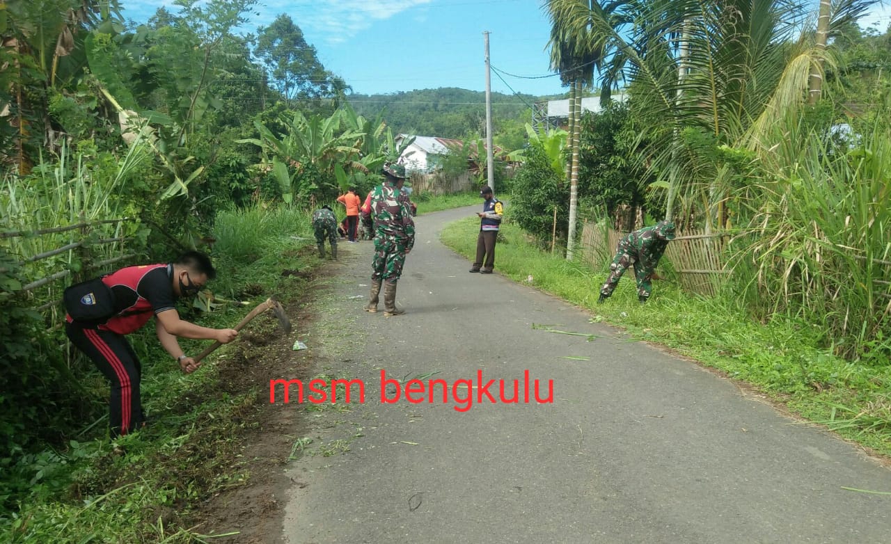 MediaSuaraMabes, Lebong – Sebelum melaksana kan sholat jum’at koramil 409-02/Lebong selatan bersama Polsek Lebong Selatan serta RT, RW, masyarakat Kelurahan Tes Kecamatan Lebong Selatan Kabupaten Lebong Provinsi Bengkulu melaksana kan Giat gotong royong kebersihan pinggir badan jalan yang sudah tertutup oleh rerumputan yang berada pinggiran jalan Pariwisata Kelurahan Tes. Jumat 18 juni 2021.