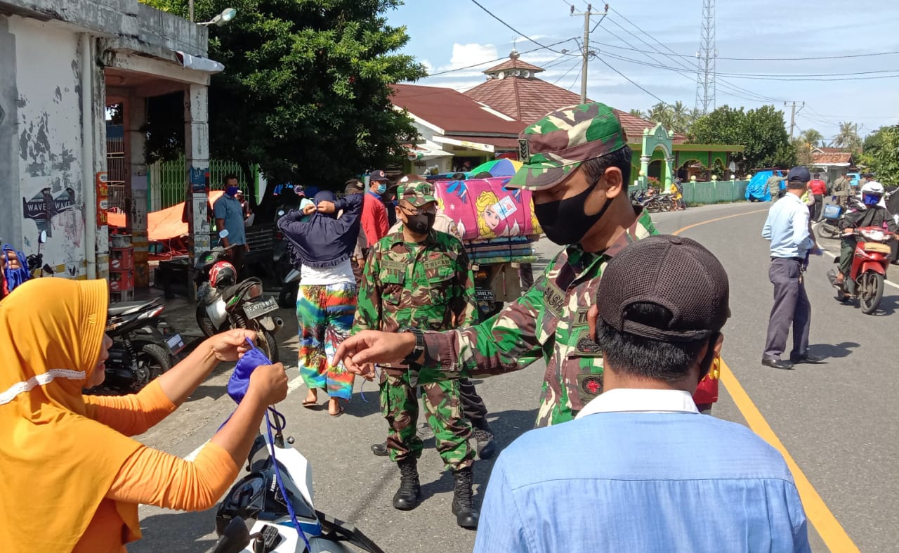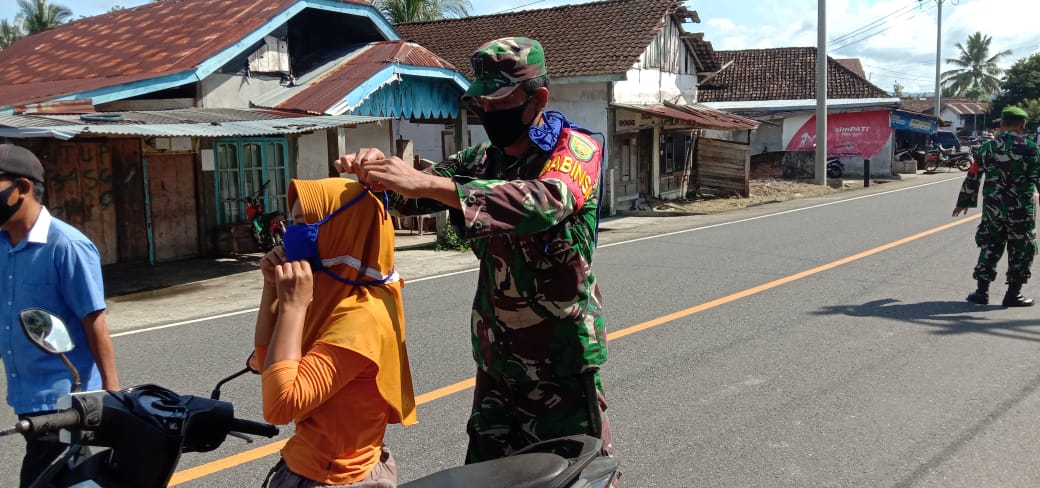 SuaraMabes, Pesisir Barat – Koramil 422-02/Pesisir Selatan melaksanakan Kegiatan Pemberlakuan Pembatasan Kegiatan Masyarakat (PPKM) Skala Mikro dalam rangka Penegakan Protokol Kesehatan Covid-19 di pekon Tanjung Jati Kecamatan Pesisir Selatan Kab. Pesisir Barat. Sabtu (28/08/2021)