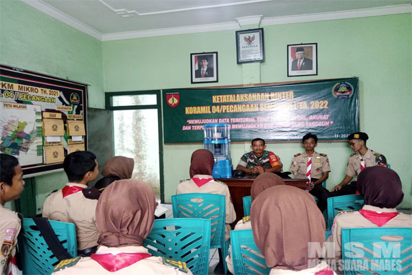 MediaSuaraMabes, Jepara – Sebagai wujud untuk meningkatkan semangat bela Negara dan membina karakter bagi generasi muda, Komando Rayon Militer (Koramil) 04/Pecangaan jajaran Kodim 0719/Jepara mempunyai tugas dan tanggung jawab untuk membina dan melatih anggota Pramuka Saka Wira Kartika di wilayah Kecamatan Pecangaan, Kabupaten Jepara. Senin, (13/3/2023).