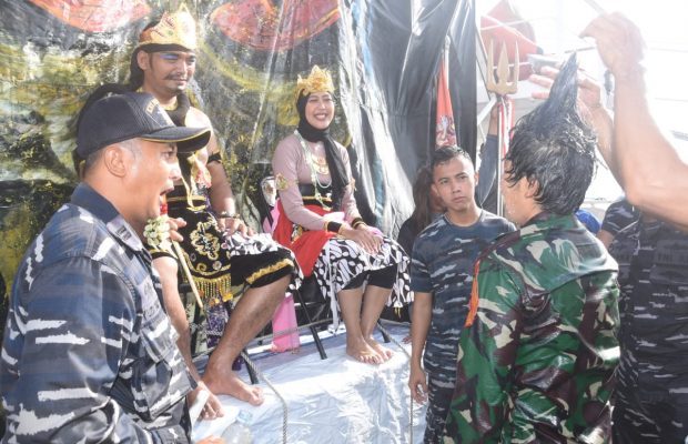Sewaktu mereka dimandikan dengan air laut dan datanglah Dewa Neptunus sebagai penguasa kerajaan dasar laut. Dewa Neptunus melaporkan dan minta izin kepada komandan KRI Bima Suci, Letkol Laut (P) Waluyo, SH, M.Tr.Hanla., bawa acara Pembaktisan telah di mulai.