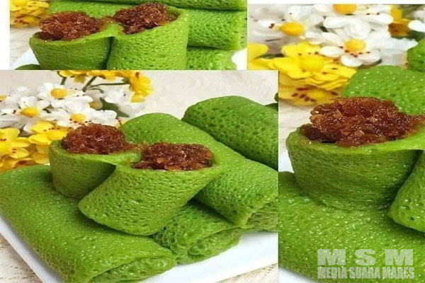Masak sampai permukaan bawah agak kecoklatan, Angkat, lebarkan adonan yang sudah matang diatas talenan, taruh 1 sdm untuk kelapa, bentuk seperti lipatan amplop, gulung Lakukan sampai adonan habis.